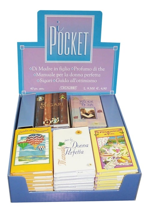 Il display da banco personalizzato è conforme all’editoria, quello raffigurato nell’immagine è creato per essere collocato in prossimità del registratore di cassa, inoltre, può ospitare cinque diversi libri e metterli in mostra. I libri saranno ben evidenti all’interno del punto di vendita e sempre ordinati, mentre, la stampa viene personalizzata in base alle disposizione del cliente.