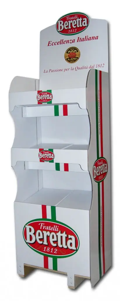Espositore a ripiani auto-montante con bancale realizzato per Fratelli Beretta
