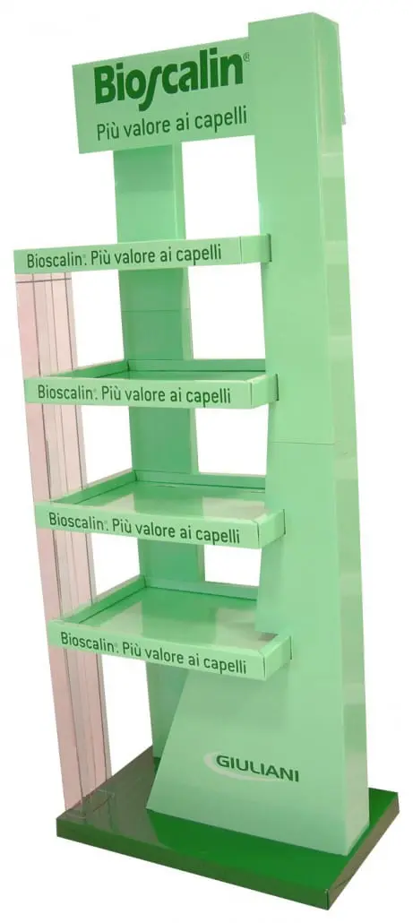 Espositore da terra per Giuliani Bioscalin con colonna in plexiglass