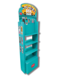Questi espositori personalizzati sono stati ideati per esporre il colorato materiale scolastico venduto dall’azienda: un prodotto cartotecnico che sicuramente verrà notato nei diversi punti vendita.