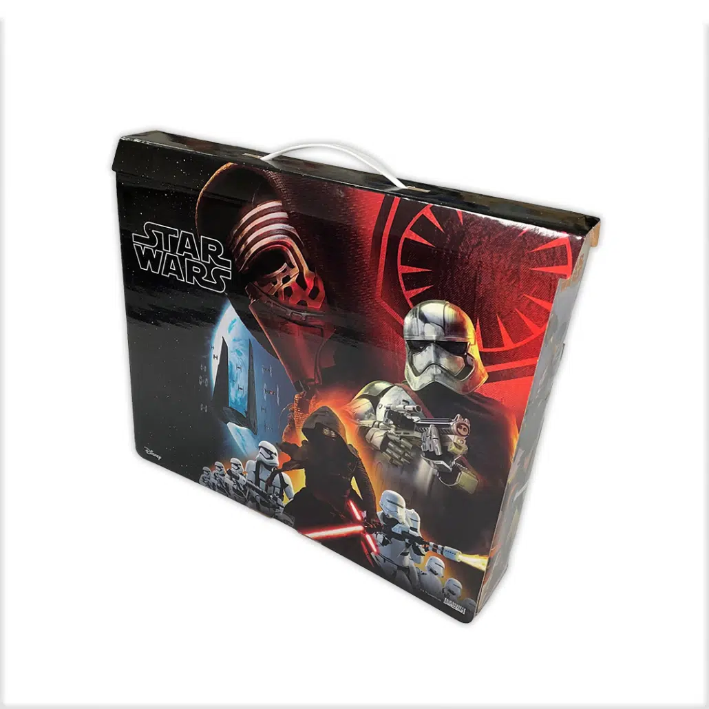 Si tratta di una solida valigetta di cartone con manico in plastica, su cui sono state stampate in altissima qualità le immagini degli amati personaggi protagonisti di Star Wars. Un prodotto bello da esporre e che sicuramente sarà in grado di attirare l’attenzione dei passanti nel punto vendita.